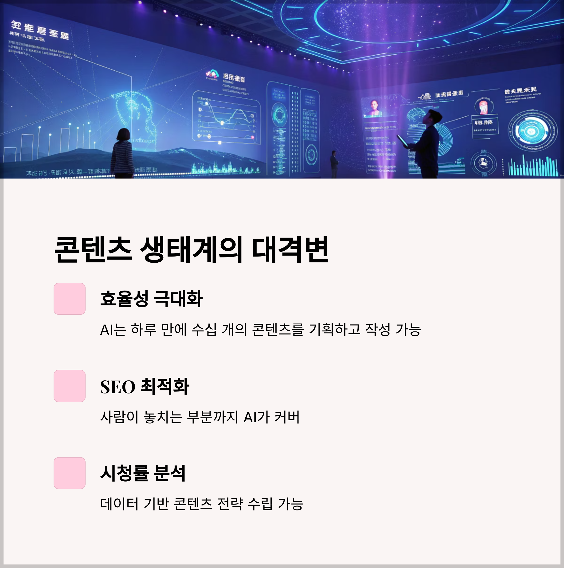 AI는 하루 만에도 수십 개의 콘텐츠를 기획하고 작성할 수 있으며,
